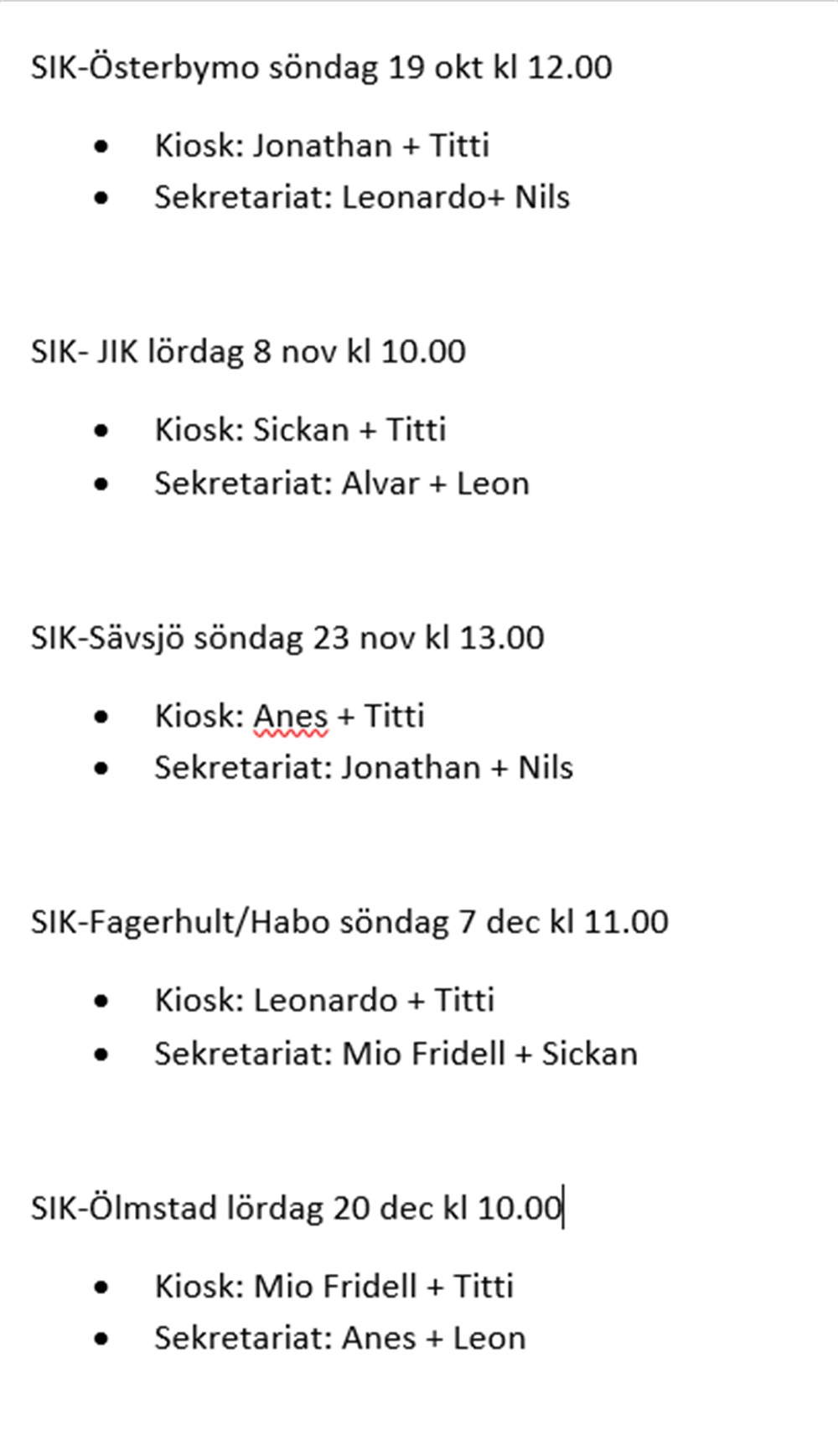 Gäller årets 5 hemmamatcher. Resterande schema för 2026 kommer i slutet av december. Vi hoppas flera nya spelare kommer ansluta till laget under säsongen.