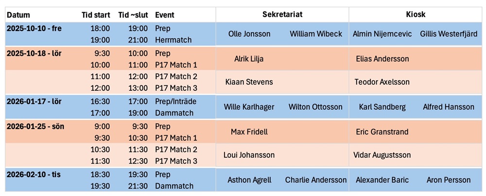 Som vi tidigare nämnt har vi ansvar för kiosk och sekretariat på ett antal seniormatcher samt våra egna poolspel under säsongen.